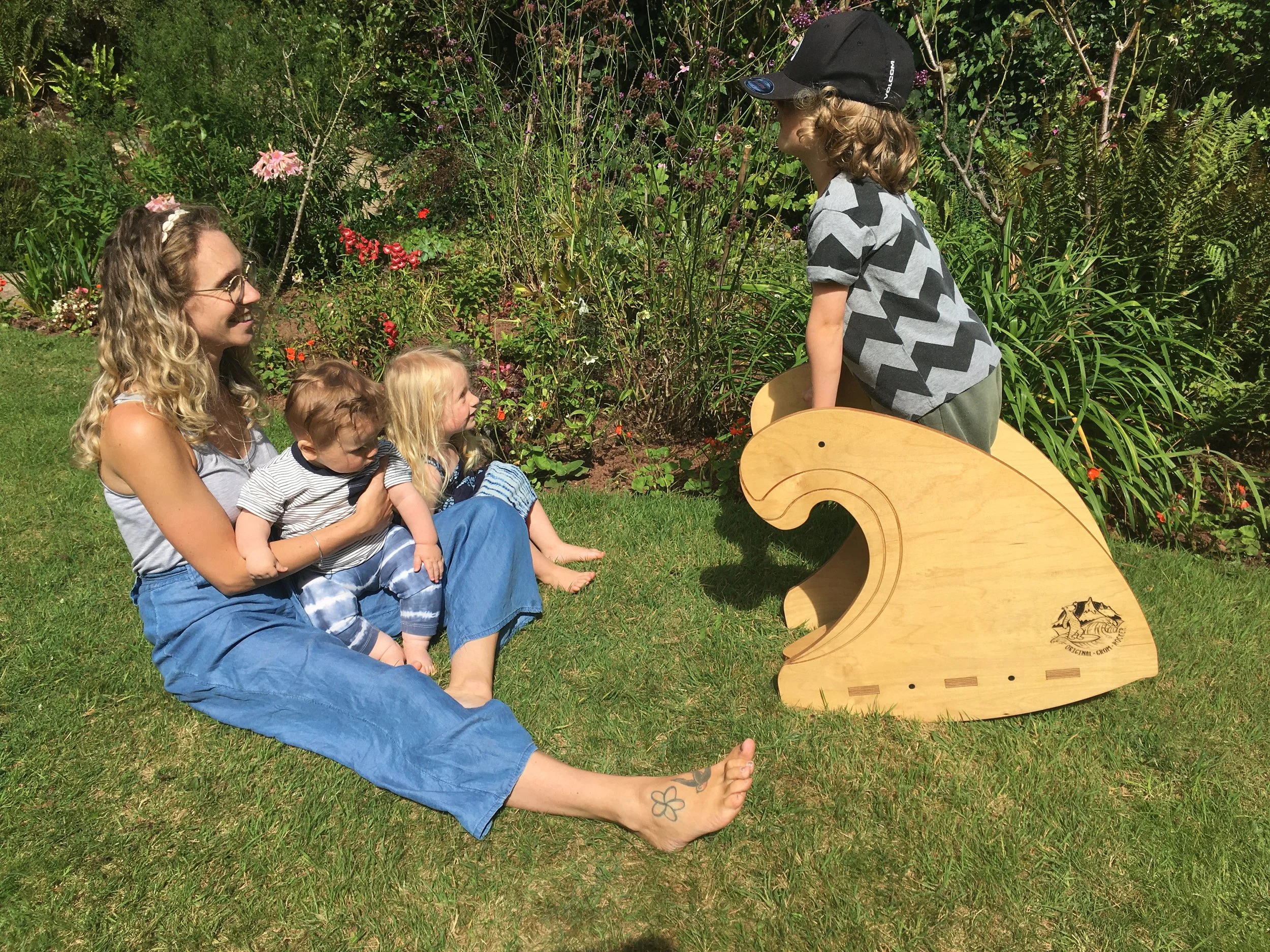 Here at OGR, we wanted a flat board that could rock like a rocking horse but offered sides and a handle for support and comfort.